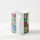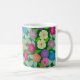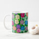 Flores de geranio café Mug. Flores de geranio pintadas a mano sobre una taza de café con un fondo verde profundo. Diseño luminoso y colorido y parte de una colección.