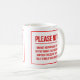 Taza divertida para un amante del café, con una negación escrita en las letras rojas, intrépidas que advierten cualquier persona hablar con el dueño de la taza antes de que hayan tenido su café.