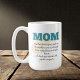 Presentamos el regalo perfecto para la mujer más importante de tu vida - la taza de café inspiradora para mamá. Esta atractiva taza es un regalo ideal para el Día de la Madre, los cumpleaños o cualquier ocasión en la que quieras mostrar tu aprecio por todo lo que tu madre hace por ti. Esta taza muestra un poema reconfortante que seguramente le dará una sonrisa a la cara de tu madre cada vez que lo use. El poema es un tributo al amor, cuidado y sacrificios que cada madre hace por sus hijos. Leerlo le recordará cuánto la amas y la valoras. Esta taza de café inspiradora no es sólo un regalo reflexivo y práctico para tu madre, sino también un recordatorio constante del vínculo especial que compartimos. ¡Pida uno hoy y haz especial el día de tu madre!