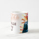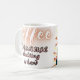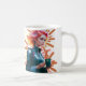 Café porque adultar es duro MUG La imagen muestra a una mujer futurista, rebelde, con el pelo empotrado en neón, usando una chaqueta metálica, sosteniendo una taza de café brillante. El fondo es un chaparrón oscuro y abstracto de líneas blancas, que añade un sentido de movimiento o impacto. A la izquierda, el texto en negrita del neón dice: "Café: porque adular es duro", en un estilo de letra lúdico y escrito a mano, brillando suavemente contra el fondo negro.