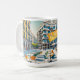 Un cuadro que refleja el ambiente animado y acogedor de una pequeña cafetería de Barcelona, que combina elementos de diseño catalán, tonos cálidos y el encanto de las calles animadas de la ciudad. Perfecto para los amantes del café y de los viajes.