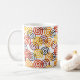 Esta taza tiene un diseño de arte deco de otoño de remolinos amarillos, dorados, naranjas, arándanos y marina en un campo de blanco. Si quieres el mismo diseño con colores diferentes, envíame un mensaje.