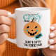 Abraza el espíritu de Halloween con esta taza personalizable que presenta una calabaza tallada linda con una cara feliz y un pedazo de caramelo de Halloween colorido. Este diseño está realzado con tipografía de letra decorativa que pregunta "¿Me das un caramelo, por favor?" más texto personalizable que dice "Caramelo y café: la pareja perfecta". Personaliza esta taza con un nombre u otro texto para crear un regalo perfecto para los amantes de los dulces, los amantes del café y los entusiastas de Halloween por igual.