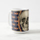 Calavera, mariposas Naranjas con fondo de patrón de diamante púrpura.