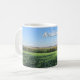 Esta taza de otoño ofrece una serena vista de la campiña inglesa, donde los árboles empiezan a cambiar de color y la exuberante vegetación se extiende hacia el suave descenso de tierra bajo un cielo azul. Personalízalo con un nombre o una expresión.