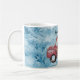 Taza De Café camión de cosecha roja sobre fondo de copo de niev