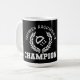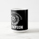 Un diseño humorístico incluye la frase 'Campeón de argumentos de duchas' que rodea a una elegante dueña. Ramas de laurel blanco encuadran el diseño. La imagen transmite una alegre celebración de los debates internos.