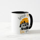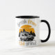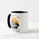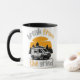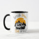 Una taza de café con una furgoneta de camping, con la frase "Descanso de la rutina" centrada alrededor de la imagen. El diseño sugiere una escapada nómada y aventurera de la rutina diaria.