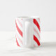 El diseño de la taza de café se inspiró en los dulces. Las rayas rojas y blancas se envuelven alrededor de la taza. El texto se puede eliminar para un patrón de menta perminable en blanco o agregar texto personalizado para la personalización que se debe dar a un profesor, familia, amigo, etc.