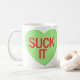 Un corazón de caramelo verde que dice: "SUCK IT".