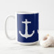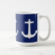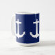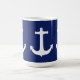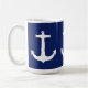 Elegante Café de Ancla / Tea Mug Cup para añadir a su colección de bebidas. Un regalo/idea de regalo fresco para todos los amantes de la calidad de los productos, vibraciones positivas, diseño personalizado de cosas únicas, vela, etc. Azul blanco. Cambie el color de fondo (azul) para que se ajuste a su estilo. Yate, barco, barco, océano, nado, pesca, pescador, marino.