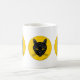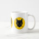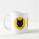 Un ilustracion retro de la cara de un gato negro de ojos amarillos aparece en un círculo tipo luna en este original arte apropiado para Halloween de Richard H. Fay.
