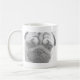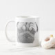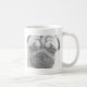 Una linda cara de pug con efecto tallado aplicado al diseño. tazas de café personalizado. Líneas de diferente ancho que crean la imagen. Idea de regalo para la gente que ama los cerdos.
