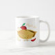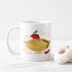 Mug con un personaje de pastel de manzana sonriente y manzanas.