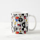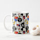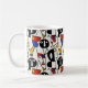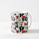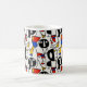 Una colección de caras completamente tontas crea una taza de café divertida y linda. Recordando el estilo cubista de Picasso, estas caras en negro, blanco, rojo, azul y amarillo son brillantes, audaces y encantadoras, un poco retro y completamente modernas.