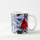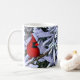 Un hermoso Cardenal Rojo descansando entre los nevados invernales.