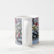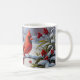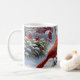 Ilustracion de dos cardenales rojos en la taza de café de invierno.