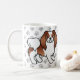 El original ilustracion personalizado de Destei de un perro de raza Chin japonés de color rojo y blanco. El fondo tiene un patrón de huellas de perros grises.