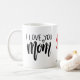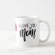 Esta elegante y moderna taza con el texto "Te amo mamá" es perfecta para tu madre. Hágale saber que la amas y que te lo recuerden cada vez que bebe su café o té. Personalizar con el nombre del niño para hacerlo único y personal.