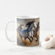 Manada de Caballos Gallopando a través de un sendero agitado, una escena dinámica con varios caballos a mitad del galope, polvo subiendo debajo de ellos, velocidad, potencia y concepto de libertad, Panorama con espacio de copia