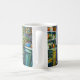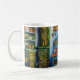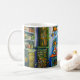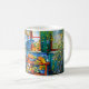 blue-black cat looks out the kitchen window in a curious, homey setting.