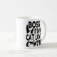 Este tazón de amante del gato presenta la cita "Jefe de día del amante del gato de noche", perfecta para cualquier jefe que ame a los gatos.