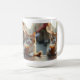 A photograph of a cute kitten. The kitten holds a beige disposable coffee cup. The background is a narrow, sunlit European street with blurred buildings.The kitten's expression is playful, and the lighting gives a warm, golden glow, enhancing the cozy atmosphere.