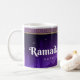 Ramadán morado y blanco es la taza de café de Mubarak que presenta mezquita, patrón árabe y "Ramadán Kareem, Feliz Mes Santo" escrito sobre fondo morado. Un regalo ideal para sus seres queridos.