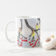 cera de cedro y manzanas de cangrejo - ilustracion de Sarah Knight. Imagen de 6 cera de cedro encaramadas sobre ramas de manzana con fruta. Los pájaros tienen cabezas y espaldas beige, máscaras para los ojos negros, colas y alas grises y un vientre amarillo. Es un ilustracion natural sereno, perfecto para los amantes de las aves.