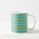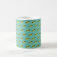 Ceramic mug with olive blossom pattern on a light teal coloured background, designed by Alan Skyrme.