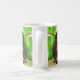 Fotografía de un lindo zorro de plata, conejillo de indias con hojas de árbol en el fondo. Imagen impresa a ambos lados de la taza. El color, el estilo y el tamaño de la taza son personalizables.