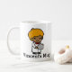 Chico de chef, vestido de blanco con corbata roja y bandeja cubierta. Personalizar el texto.