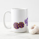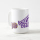 Esta taza de café se muestra con una estampación de poms del entrenador. Colores Púrpura y Blanco Personalizar esta taza o compra como está diseñado. Imagen con licencia