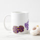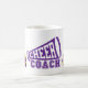 Esta taza de café se muestra con una estampación de poms del entrenador. Colores Púrpura y Blanco Personalizar esta taza o compra como está diseñado. Imagen con licencia