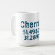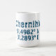Diseño de taza de café con coordenadas de latitud y longitud para Chernihiv, Ucrania en fuente oscura azul deteriorada . Chernihiv está ubicado en el norte de Ucrania y ha sido apodado "La Ciudad de las Leyendas".