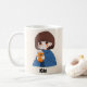 Un lindo tazón de café de Personalizable con un ilustracion de un chica chibi bebiendo café. ¡personalizar con tu nombre o la persona que amas y dásela como un regalo!