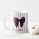 Add a touch of sophisticated flair to your daily routine with this stunning mug. A richly detailed, deep purple satin bow is the focal point, set against a charming pattern of pastel purple and white vertical stripes. Your name is beautifully inscribed beneath the bow in a graceful script, making it uniquely yours. This design is ideal for those who love classic elegance with a modern twist, bringing a sense of refined beauty to your kitchen or office space.