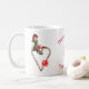 Un caprichoso elfo chica sentado en un corazón de caramelo de caramelo con Navidades del arco rojo. Café de vacaciones o taza de té. Agregue su propio mensaje personal utilizando la plantilla, o elimine esa opción para una taza sin formato. Para más personalizar del texto, haga clic en Personalizar. Disponible en diversos tamaños, estilos y colores. Por favor visite mi galería para ver más Navidades y tarjetas de Navidad y regalos. ¡Gracias por pasarse por Smilin' Eyes Treasures!