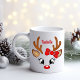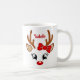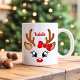 Esta es una adorable jarra de renos que presenta la cara de un reno chica con un arco rojo. La taza sería un gran regalo personalizado ya que el nombre de la taza puede ser personalizado.