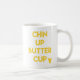 NewParkLane - Mug, con una dulce cita motivacional 'Chin up buttercup' en una tipografía divertida y moderna en amarillo brillante, y con un corazón amarillo. Un lindo mensaje para un poco de apoyo y aliento. Proteja esta colección para ver los elementos coincidentes. ¿Tienes deseos de diseño personal específicos? ¡Siéntete libre de contactarme!