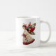 Lovely Christmas angel with red and green festive details, poinsettias and golden stars. Brings warm holiday feelings and nostalgic Christmas charm to your celebration.