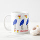 Enjoy your favorite holiday beverages in this festive Christmas mug featuring a cheery heron bell choir. Caption on mug: Christmas Bells Are Ringing!