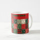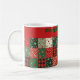 Christmas-themed patchwork pattern featuring green and red colors on a Coffee Mug. This festive coffee mug showcases a Christmas patchwork design in shades of green and red. Personalize this coffee mug with a name to make it a special Christmas gift. The design incorporates a Christmas patchwork pattern in green and red hues, perfect for the holiday season. This is a custom Coffee Mug where you can add personalized name.
