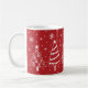 Red Christmas Coffee Mug with white chalkboard style Christmas Trees and Snowflakes doodles. Bright, colors of christmas design featuring white christmas trees and snowflakes red. Modern, chic holiday mug with festive red and white design that is ideal for a Christmas gift. Features Digital Art based on Hand Drawn Christmas Trees and Snowflakes Doodles.