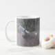 Taza con subtítulos de Ciervo Mula Macho. Este gran ciervo mula macho estaba buscando hembras en la maleza a lo largo del fondo de un arroyo.