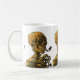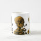 Arte del cráneo de Van Gogh del vintage en la taza de café. El cráneo está fumando un cigarrillo,