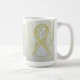 La taza de ángel de la guarda muestra la pintura de un ángel de cinta amarilla. Las tazas o tazas de arte de los ángeles de conciencia amarillos se pueden personalizar con mensajes personalizados para hacer imanes de gran causa para recaudaciones de fondos, regalos de taza de concientización u otros eventos o ocasiones especiales.