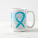 La taza de ángel de la guarda muestra la pintura de un ángel de cinta azul turquesa. Las tazas de arte o tazas de cinta de ángel de la conciencia turquesa se pueden personalizar con mensajes personalizados para hacer tazas de gran causa para recaudar fondos, regalos de taza de concientización u otros eventos o ocasiones especiales.