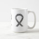 La taza muestra la pintura de una cinta de sensibilización blanca y negra que representa la toma de conciencia para acabar con el racismo. Las cintas de arte o las tazas de conocimiento blancas y negras se pueden personalizar con mensajes personalizados para hacer tazas de gran causa para recaudar fondos, regalos de taza de concientización u otros eventos o ocasiones especiales.