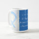 Prostate Cancer usa una cinta azul para mostrar apoyo a su conciencia. Esta taza de personalizado muestra pinturas de arte de ángeles guardianes de la cinta azul de la conciencia con el mensaje "¡Espero y apoyo la conciencia sobre el cáncer de próstata!" La conciencia azul personalizado guardian angel ribbon imagen tazas de café o tazas pueden ser personalizadas con mensajes personalizados para hacer grandes causas para recaudar fondos, regalos de taza de concientización u otros eventos especiales o causar ocasiones de apoyo. Haz tus propias palabras personalizadas para un mensaje personal de esperanza y apoyo para compartir!